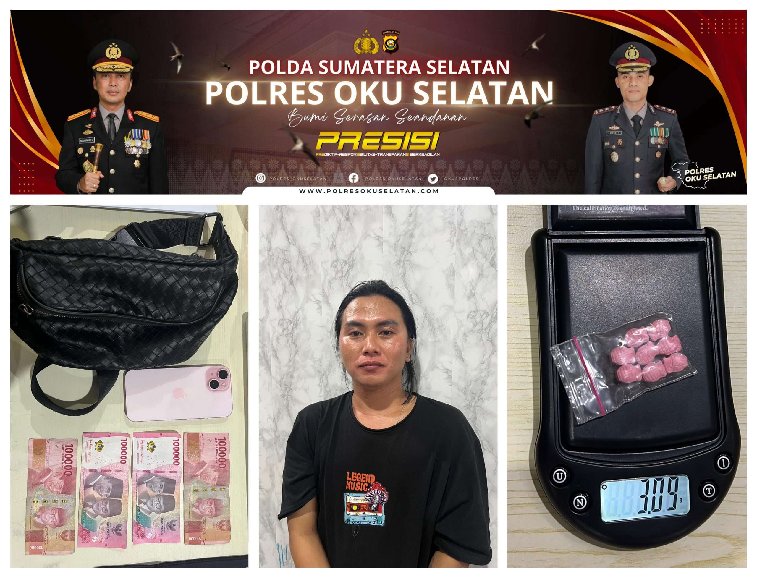 “Kasat kami memimpin langsung penggerebekan ini. Tersangka dari Lampung Barat datang ke wilayah OKU Selatan membawa ekstasi. Ini membuktikan bahwa jalur distribusi lintas provinsi terus kami waspadai dan tindak secara tegas,” ujar AKBP I Made Redi Hartana.